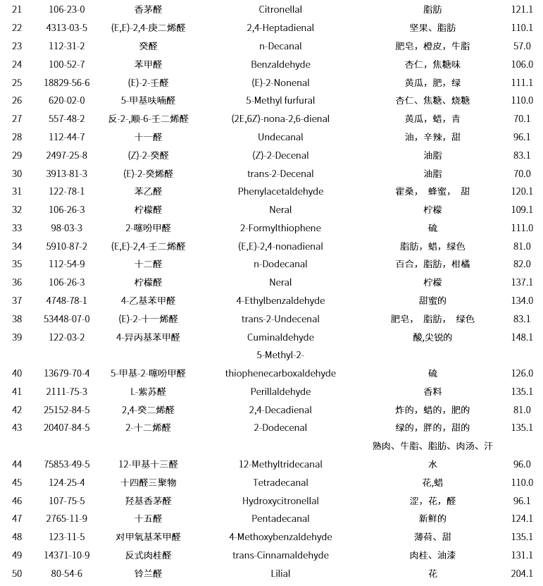 SPME进样结合GC-MS/MS测定:FASST采集方式,同时提供定性定量信息,结合香味数据库无需标品即可定性醛类物质