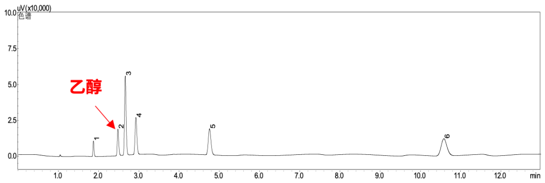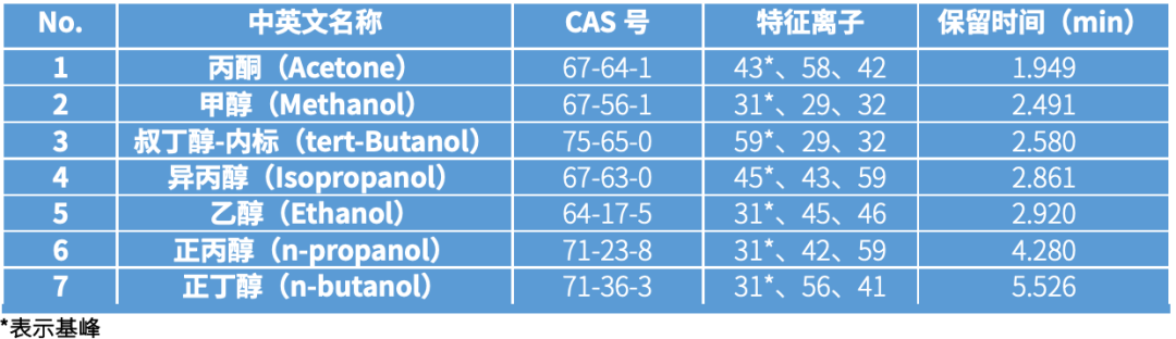 根据乙醇等6种化合物易挥发的特性,采用顶空气相色谱检测,依据两种不同性质色谱柱的保留时间进行定性,以峰面积为依据,内标法或外标法定量;或采用顶空气相色谱-质谱检测,依据保留时间、质谱特征碎片离子进行定性。