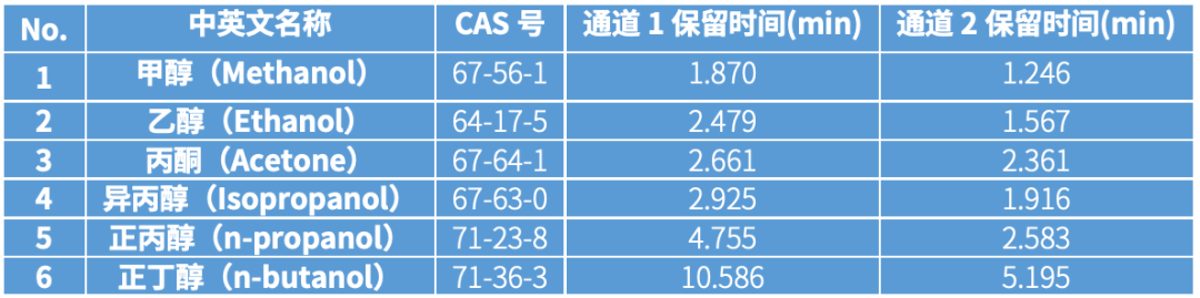 通道1色谱柱1:Rtx-BAC1,30m×0.32mm×1.8μm,通道2色谱柱2:Rtx-BAC2,30m×0.32mm×1.2μm。