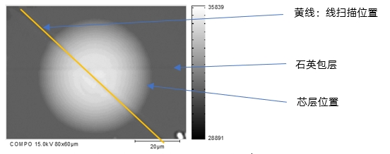 多模光纤纤芯横截面的面分析与线分析测试结果如下: