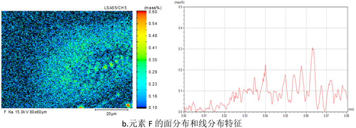 b.元素 F的面分布和线分布特征