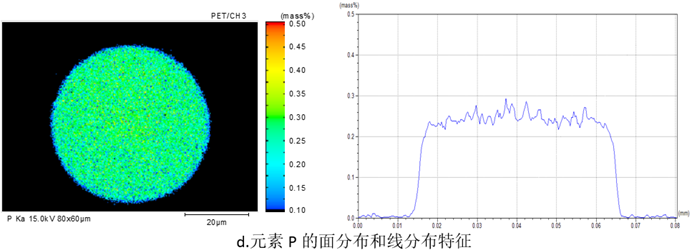 d.元素 P 的面分布和线分布特征