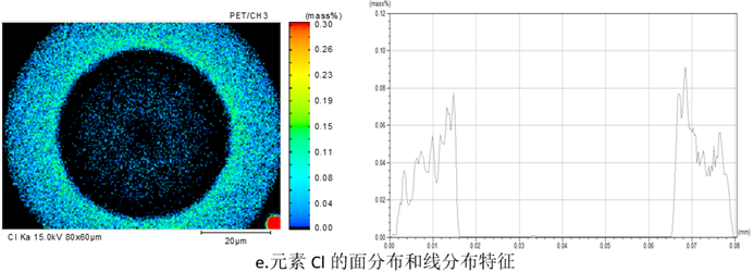 e.元素 CI 的面分布和线分布特征