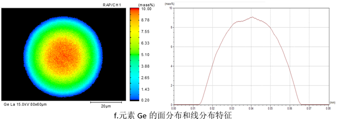 f.元素 Ge 的面分布和线分布特征