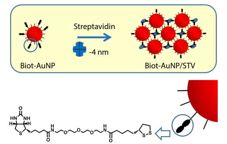 生物素-链霉亲和素复合物与AuNP作用示意图