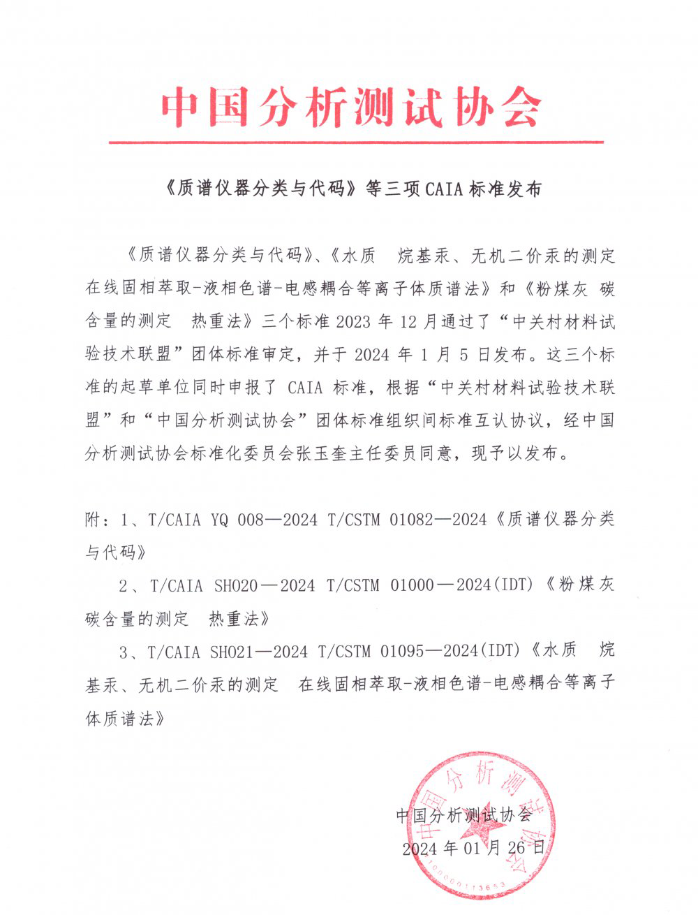 秉承“以科学技术为社会做贡献”的一贯宗旨和“为了人类和地球健康”的经营理念,开云手机登录入口·(中国)官方网站中国创新中心与中国科学院生态环境研究中心,联合多家实验室,共同申请了团体标准《水质 烷基汞、无机二价汞的测定 在线固相萃取-液相色谱-电感耦合等离子体质谱法》,该标准由中国材料与试验标准化委员会科学试验领域创新方法标准化技术委员会(CSTM/FC98/TC02)和中国分析测试协会共同归口,于2024年1月5日正式批准发布。开云手机登录入口·(中国)官方网站中国创新中心与中国科学院生态环境研究中心,作为主要的标准制定单位,共同承担了试验方案设计、标准验证试验、标准文本撰写等工作。本标准的颁布,为水样品中汞形态的分析,提供了一种新颖的快速灵敏分析方法,有望在环境水样、生活饮用水质量监测和食品安全检测中发挥重要的作用。