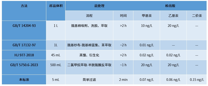 表1 本标准(在线SPE-LC-ICPMS)与现行标准分析方法分析性能比较