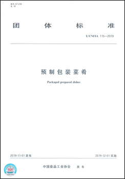 团体标准T/CNFIA 115-2019《预制包装菜肴》从感官指标、理化指标、安全指标等方面明确了预制菜的技术要求,规定了污染物、微生物、真菌毒素、农药残留、食品添加剂等的限量要求。