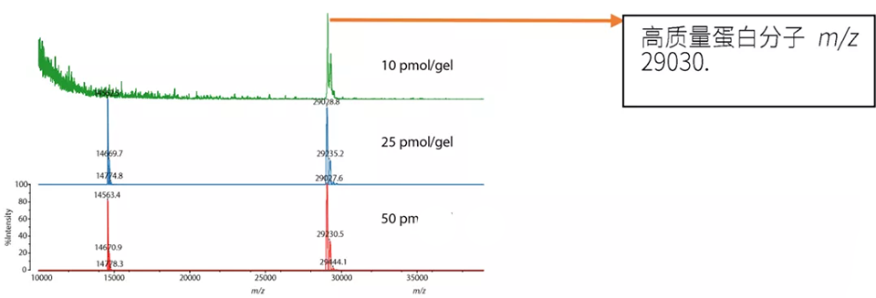 MALDI-8020线性模式MALDI-ISD技术,无需复杂的工作流程,无需胰蛋白酶消化即可直接对高质量蛋白质(如本文所述m/z 29030示例)进行N端测序。