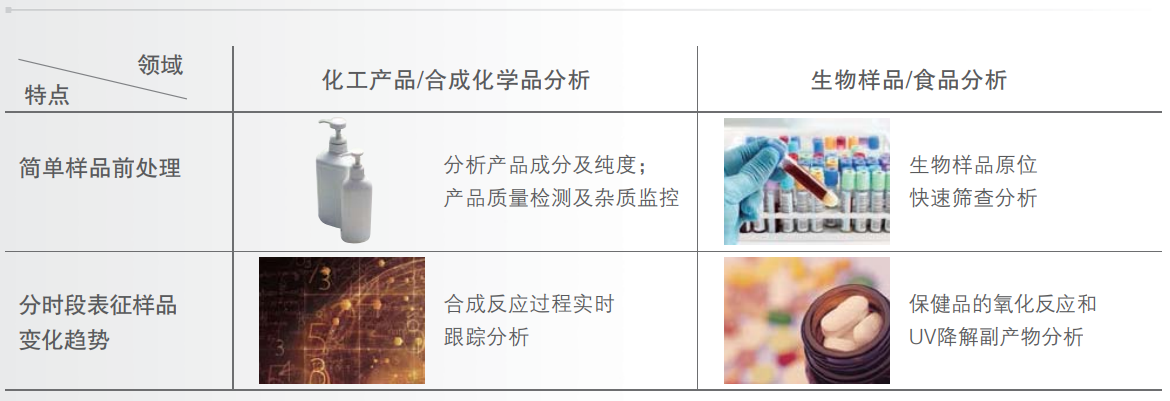 | • 组织切片,例如来自实验动物或食品的切片 | • 检测化工原料 |