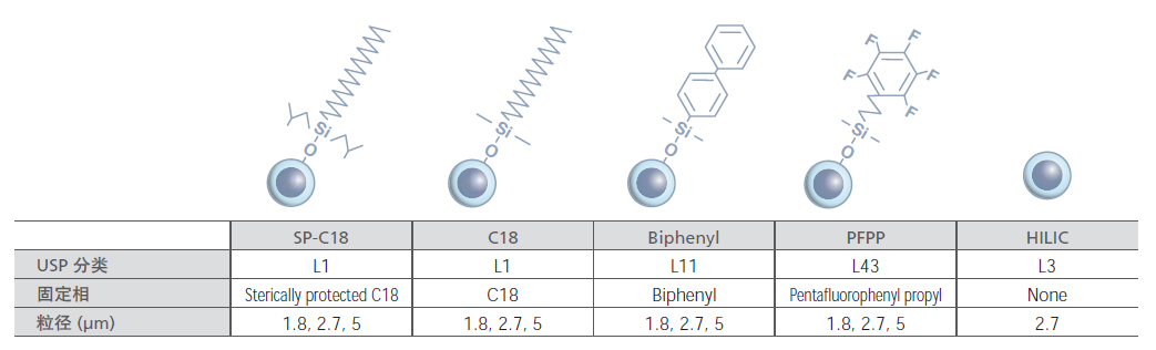 表面多孔颗粒(SPP)技术提供了优异的分离效果和快捷的分析速度。该系列色谱柱可为各行业、各领域分析应用提供更佳的选择。