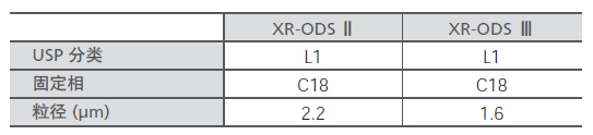 尽管Shim-pack™XR-ODS II系列色谱柱粒径为2.2μm,但其可在60 MPa的压力下使用,可适用于广泛的分析需要。XR-ODS III色谱柱的粒径减小到1.6μm,最大使用压力为100MPa,即使色谱柱较短,但仍可获得高分离度。