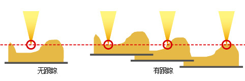 此功能根据事先取得的多点高度信息,在分析过程中通过逐一控制样品台的Z轴坐标来实现。通过设定高度信息得出跟踪面,可进行等高线或3D显示。