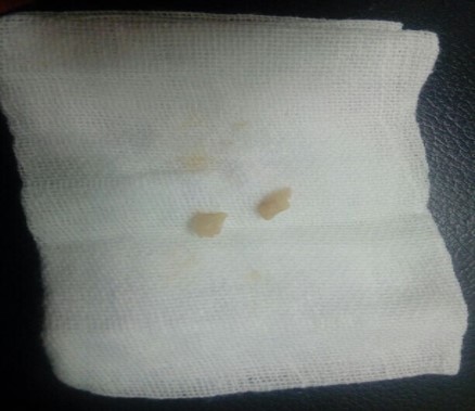 ![]() 7岁儿童断层融合提示侧支气管分叉处可见一高密度影 |